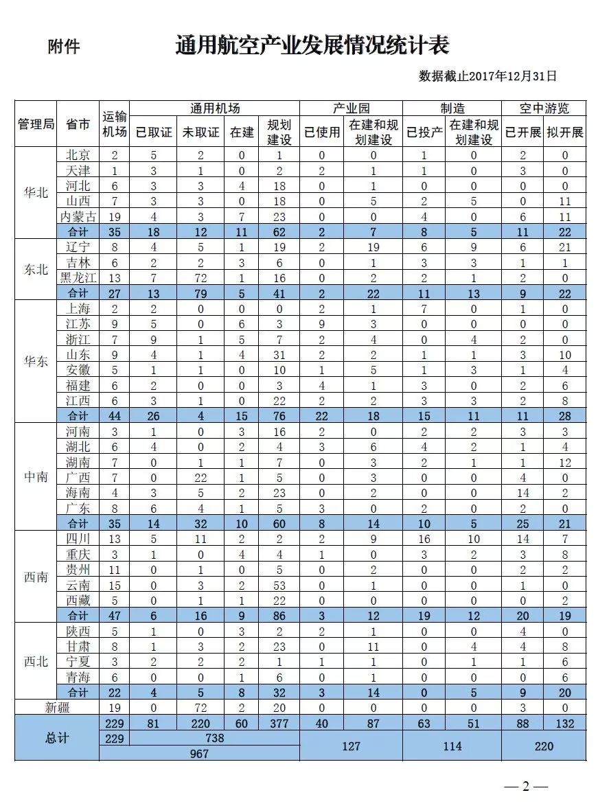 為落實國務院辦公廳《關于促進通用航空業(yè)發(fā)展的指導意見》,扎實推進各項任務,全面掌握各地通用航空產(chǎn)業(yè)規(guī)劃建設情況,經(jīng)各地區(qū)管理局、監(jiān)管局與轄區(qū)內地方政府相關部門確認,對通用航空業(yè)發(fā)展和規(guī)劃布局基本情況進行了全面摸底,包括可供通用航空起降的機場(運輸和通用機場)、航空產(chǎn)業(yè)園(含通航項目)、航空小鎮(zhèn)、空中游覽項目,現(xiàn)將相關信息匯總發(fā)布,供各地方、各部門及各類投資主體借鑒參考。