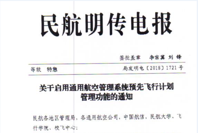 二、初期,系統(tǒng)僅受理跨中國人民解放軍戰(zhàn)區(qū),或者跨民航地區(qū)管理局轄區(qū),或者使用外籍航空器(飛行員)的通用航空預(yù)先飛行計劃,運行監(jiān)控中心將根據(jù)實際使用情況,逐步推廣應(yīng)用。