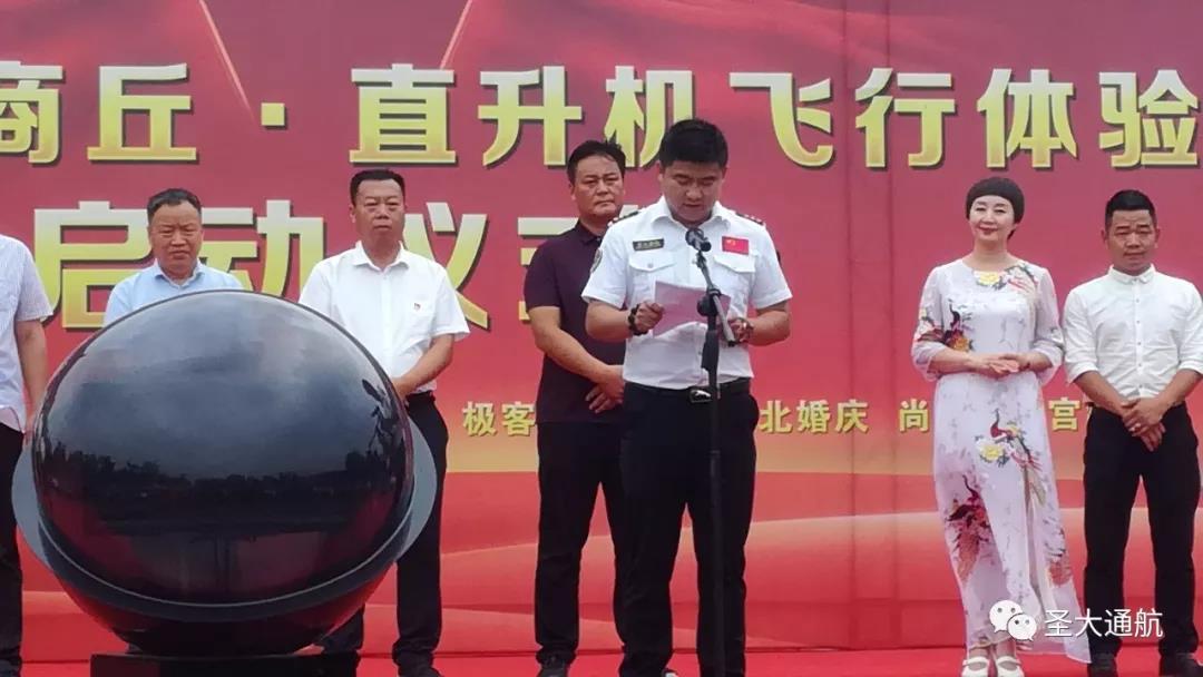 河南圣大通用航空有限責任公司總經(jīng)理蔡超藝在啟動儀式上致辭表示,商丘市文化底蘊深厚,名勝古跡眾多。作為中國旅游發(fā)源地的商丘,旅游資源十分豐富。低空飛行體驗,作為一項時尚的體驗式觀光方式,已受到越來越多市民的歡迎。此次低空飛行體驗的舉行,對豐富商丘旅游內(nèi)涵、將商丘打造成為向國際邁進的一流旅游城市具有積極意義。