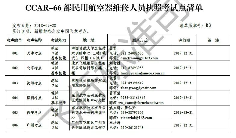 近日,民航維修人員信息平臺(tái)公布了《維修執(zhí)照考點(diǎn)清單(R3版)》,截至2018年9月28日,我國(guó)民航維修執(zhí)照考點(diǎn)已達(dá)29個(gè)。