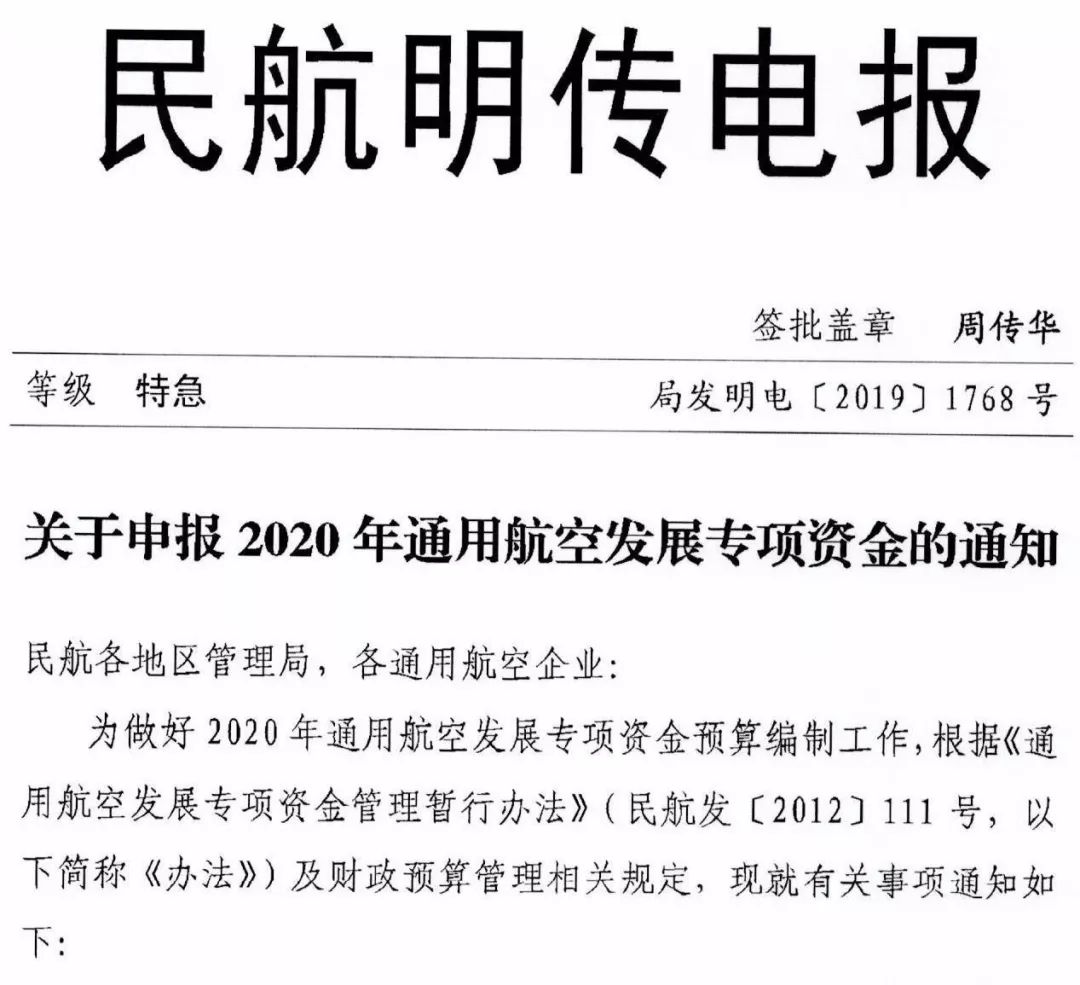 關(guān)于申報(bào)2020年通用航空發(fā)展專(zhuān)項(xiàng)資金的通知