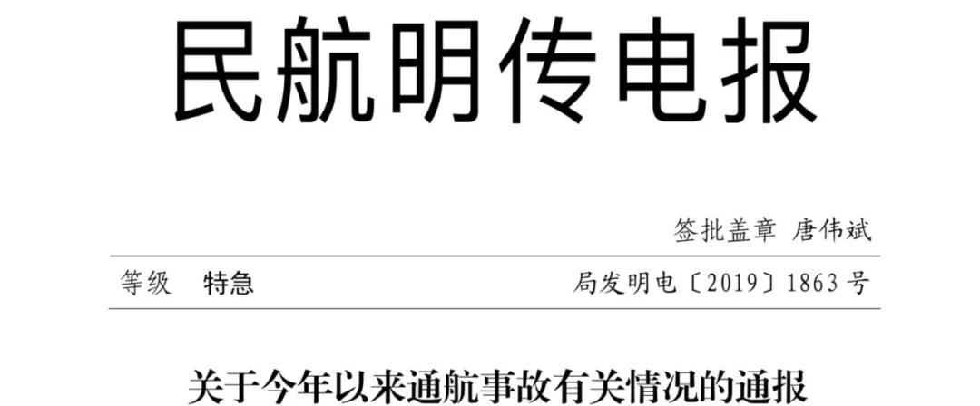 根據(jù)航空安全信息系統(tǒng)數(shù)據(jù)統(tǒng)計(jì),2019 年至今,全民航共發(fā)生10 起通航事故(其中一起非法飛行事故),造成7 人遇難、10架航空器報(bào)廢?,F(xiàn)將有關(guān)情況通報(bào)如下: