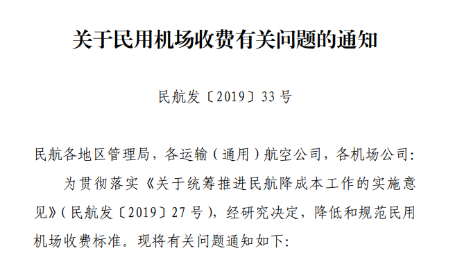 為貫徹落實(shí)《關(guān)于統(tǒng)籌推進(jìn)民航降成本工作的實(shí)施意見》(民航發(fā)〔2019〕27號),經(jīng)研究決定,降低和規(guī)范民用機(jī)場收費(fèi)標(biāo)準(zhǔn)。現(xiàn)將有關(guān)問題通知如下: