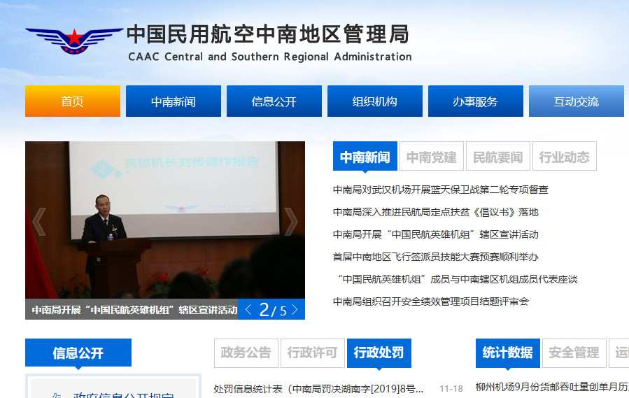通航資源網(wǎng)消息,11月18日,中國民用航空中南地區(qū)管理局發(fā)布行政處罰信息統(tǒng)計表。