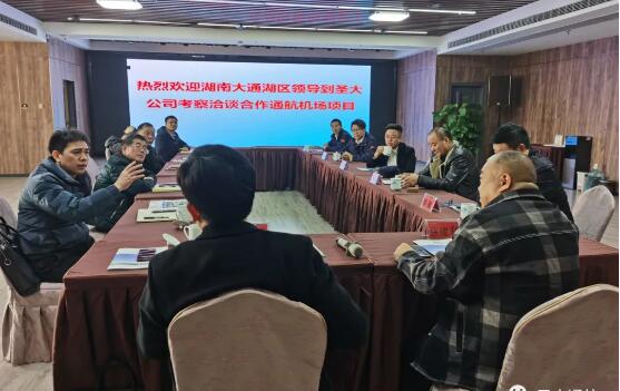12月26日至27日湖南省益陽市大通湖區(qū)常務(wù)副區(qū)長 、大通湖通用機(jī)場建設(shè)項目指揮長張輝等一行6人在圣大航空董事長蔡建利的陪同下,到河南圣大通用航空有限責(zé)任公司進(jìn)行考察。